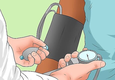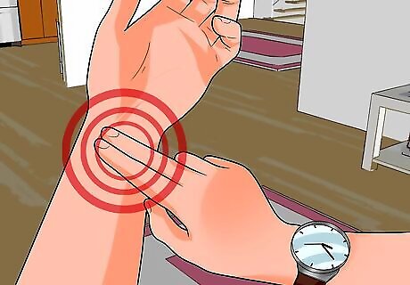 Check for an elevated heart rate. All types of shock, including distributive shock, typically present with a faster than normal heart rate (over 100 beats per minute). You can take someone's pulse, or listen to their heart with a stethoscope, to determine their heart rate. In distributive shock, when you feel the pulse at the person's extremities (wrists and/or ankles), you are likely to feel a "bounding pulse." A bounding pulse is a stronger, more forceful pulse than normal. It is due to the increased total blood volume in distributive shock, from the vasodilatory effects that occur in sepsis or anaphylaxis (among other things). The bounding pulse may be felt early, but as the shock progresses, the pulse will become weak or absent in the extremities.
