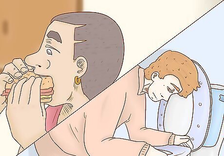 Observe bathroom habits. Teens with certain types of eating disorders like bulimia tend to purge after eating a meal. This may involve inducing vomiting or inducing a bowel movement. If your teen consistently goes to the bathroom during or immediately after eating, it may be a sign that your teen is purging themself of food. Some teens may take dietary supplements or laxatives to purge food or regulate the appetite. Be on the lookout for any frequent medicine or supplement use, or frequent trips to the bathroom.