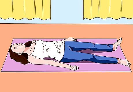 Do a body scan. The body scan is a grounding meditation exercise that helps you become aware of your body. It pulls your attention away from distressing thoughts to what’s happening in your body, helping you notice different sensations associated with stress. When you are more aware of where tension lies in your body, you can take measures to relieve it. Lie comfortably on your back on the floor or bed. Relax your arms at your sides. Take a few deep breaths. Turn your attention to your feet. Going slow, pay attention to any sensations in your feet. Are they tense? Achy? If they are uncomfortable, take deep breaths, imagining the discomfort melting away with each exhale. Move up to your ankles. Then, go to your calves, knees, and so on until you have scanned your entire body.