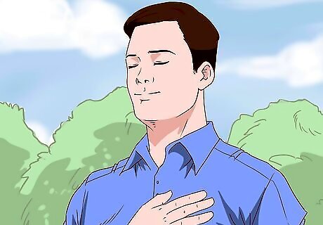 Move around if you feel stuck or cooped up. Movement can help ease anxiety and boost your awareness. Change the position you are sitting or move to a different area. Shake out any tension or nervousness that you may have bundled up. If you are sitting at a desk, try shaking your hands, tapping your feet, or rolling your shoulders. You may even want to stand and stretch or jump a few times to loosen yourself up. If you are waiting somewhere, try walking around the room or doing some light stretching.