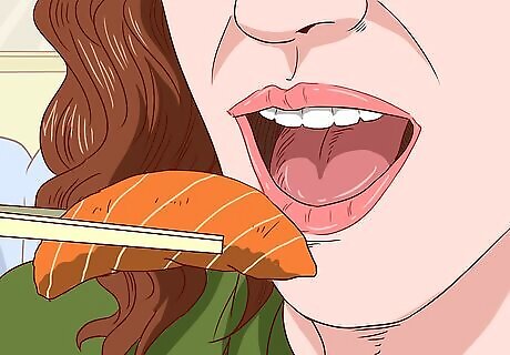 Eat mindfully. You may feel off-center because you constantly move from activity to activity with little awareness. Eating is no better—you might eat while driving, talking, or working to save time. Mindful eating is a great way to slow down and ground yourself in the present moment. Before taking a bite, express silent appreciation for the hands that prepared your meal. Admire the many colors, smells, and textures. Now, pick up your fork and take a modest bite of food. Return your fork to your plate. Fully engage your senses as you chew at least 20 times per bite. Pick up your fork and take another bite, repeating the process. Avoid talking or any sort of entertainment while eating. Ground yourself completely in the act of eating.