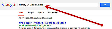 Know the truth about chain letters and how they started. Go to Google or any other search engine and type in "History Of Chain Letters". You'll be surprised when you know the real reason they were created. Chain letters exploit every human emotion and desire there is, from alarm to humor to outrage and sadness, all to achieve one goal, to get people to spread them. A few sites that deal specifically with chain letters of all kinds: Break The Chain Truth Or Fiction and Snopes.com These sites are extremely useful when a naive friend sends you that scary headlight gang initiation story or that sad Amy Bruce dying kid hoax. Neither of those are true, and these sites have information about them and much much more.