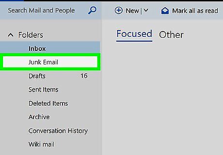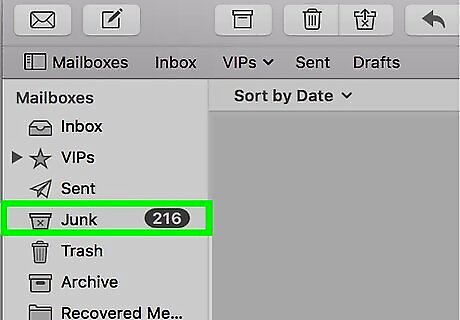 Click the Junk mailbox. It’s in the left column of the Mail app.