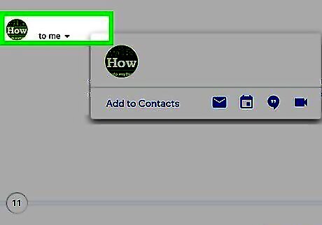 Hover your mouse over the sender’s name or address. It’s at the top-left corner of the message. A pop-up containing the sender’s email address will appear.