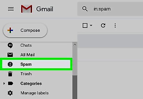 Click the Spam folder. It’s in the folder list along the left side of Gmail. This opens your Spam inbox.