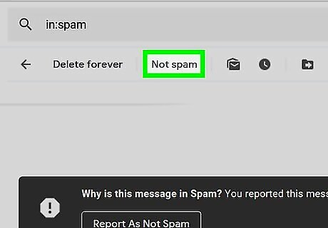 Click Not spam. It’s a button above the message list. This marks the selected message(s) as spam and moves it/them to the inbox.