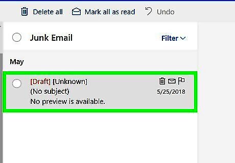 Click the Junk folder. It’s in the left column of Outlook. A list of junk messages will appear.