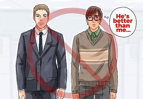 Avoid comparing yourself. One way people sabotage themselves is by comparing themselves to others. People may compare themselves to others at work, to people they see throughout their days, or the people they see on social media. Don't compare where you are with your goals to someone else. You are different people, and everyone is always at a different place in their lives, and comparison is typically the strongest component of self-sabotage. When you compare yourself to others, the other person always seems better because you only see what they want you to see. The only person you should compare yourself with is you. If you start comparing yourself, take a step back and say, "I am not that person. They have a different job, a different background, and are at a different place in their life. I don't have to be like them."