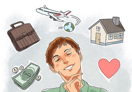 Decide what you want. Figuring out what you want and setting goals is a step towards getting over your self-sabotage. You can never better yourself or succeed if you don't dream of better things or set goals. Hoping that good things come to you helps you move forward instead of sabotaging yourself. Don't be afraid to set big goals for yourself. There's nothing wrong with wanting a good future. Take some time to think about what you really want. Do you want a promotion? Financial stability? Better health? More rewarding relationships? To travel more? Be honest with yourself about what you want. After you have taken time to think, write down the things you want, or consider setting up a vision board to help you visualize your desires. Prioritize your list or board. What do you want the most? Which things are attainable now, and which are long-term goals?