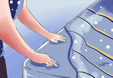 Keep spare linens and pajamas close at hand. When your child has an accident in the middle of the night, it’s helpful to have clean sheets and pajamas nearby. That way, you can simply remove the soiled sheets, wipe the waterproof cover with a cloth, put clean sheets on the bed, and help your child change into fresh sleepwear. As your child gets older, you may want to enlist his or her help in this routine. Most preschoolers can remove soiled sheets, put on clean pajamas, and help you put clean linens on the bed.