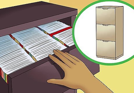 Keep books in a filing cabinet. A filing cabinet keeps your bagged and backing boarded collection well-organized and protected from damage. If you have a filing cabinet with a lock, comic books stored inside will also be less likely to be stolen.