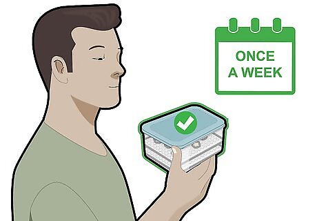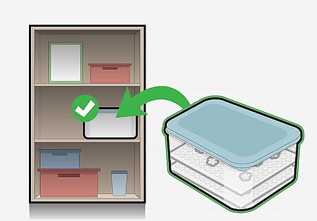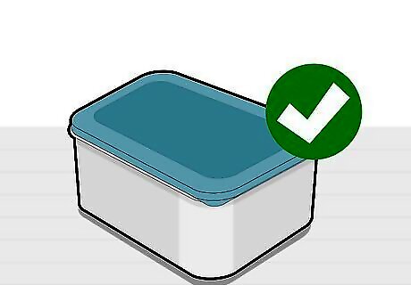 Use an airtight container with a clear lid. Gumpaste flowers keep best in an airtight, plastic container with a lid, as long as there is no moisture left in the flowers themselves. A clear container is best so you can check on your flowers from time to time and be sure they've kept their shape. A basic Tupperware container is the perfect storage tool for your flowers.