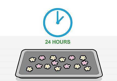 Let the finished flowers dry for at least 24 hours. Moisture will ruin gumpaste flowers and even the slightest amount of damp air can make the petals wilt and droop so it's important to dry the flowers completely. Lay flowers out flat on a baking sheet or paper towel to dry. A dark shelf in a dry room is a perfect place to dry your flowers. Don't put them in the fridge as this is a damp environment. Keep flowers out in the open to dry rather than covering them up or putting them in a box.