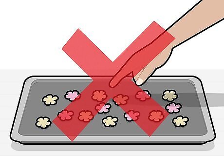 Don't touch the flowers with your fingers during the drying process. When waiting for the gumpaste flowers to dry, it might be tempting to touch them to check how dry they are but this can ruin their shape and colour and destroy all your hard work. Your fingers may be hot or damp or even dirty. Try to resist temptation and just give the flowers time to dry on their own. If you need to move the flowers once they've been made, wear plastic gloves or pick the flowers up using a paper towel or tissue.