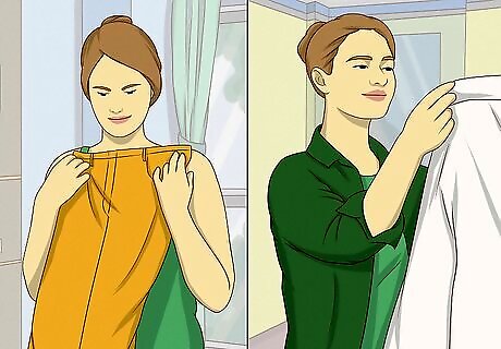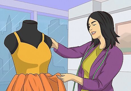 Think like a fashion designer. Have you seen the way fashion designers handle clothing? They have no mercy—they pin, tuck, sew, cut, and fold an innocent item out of recognition in moments. If you're crafty, look at the thrift store as a collection of works in progress. When you try something on, try tying it, turning it inside out, wearing it backwards, or tucking it in. Pinch it back with your hands to see what a clip or a few stitches would do to the drape. If something only needs a minor edit, take it. Follow through immediately! Don't leave your unaltered clothing lying around the house—you may lose inspiration and end up with a heap of unwanted junk. Dig through the bargain bin. You'll find stained and stretched pieces there—some of which can be easily mended, dyed, or otherwise restyled.