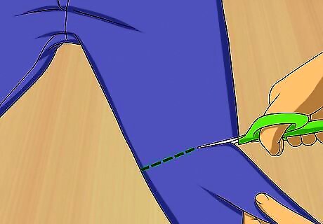 Tailor and trim your new clothes. If you bought it cheaply, mess with it freely. Cut and hem sleeves and pantlegs. Try artfully slashing some ho-hum jeans—all you need is to run a razor across the area you want cut. Undo the hem on some capri pants for a trendy look. Paint splatter a plain shirt. Dye a dull garment. Make cut offs from overlong or worn-out jeans.