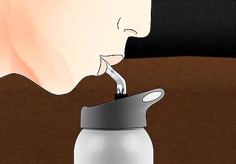 Drink water while you shelter on the floor. Keeping your body hydrated can help you withstand the heat of the fire. After you’ve gotten down on the floor, drink any water or liquids that you have, splitting them between people if you’re with others. Be careful not to spill any water on your clothes or blankets.