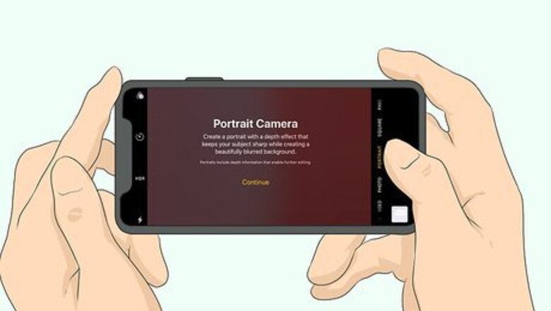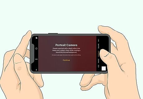 Use a simple background. If you're taking a picture outside, you'll want to use a simple background, like a brick wall. If you're inside, consider posing in front of a blank wall. Avoid sign posts, telephone poles, or wires in your picture. Portrait mode slightly blurs the background so it's out of focus, so a solid or lightly patterned backdrop will make this effect more dramatic.