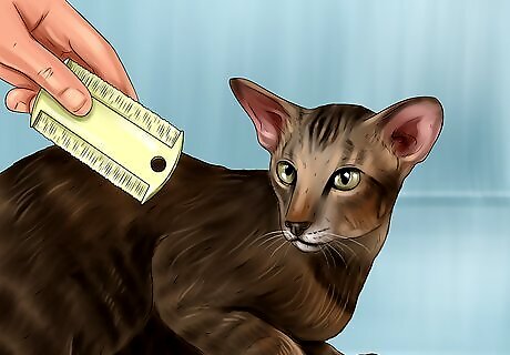 Comb your cat. While most Orientals are shorthair, they still shed all the time. Thus, you’ll have to comb them frequently. By combing them, you’ll remove loose hair, dirt, and ensure your cat has a healthy coat. Use a soft bristle brush. You can also use a stainless-steel comb. Comb your cat a few times a week. This is important, as you’ll want to prevent your cat from having tangles and knots.