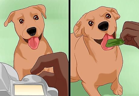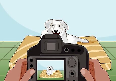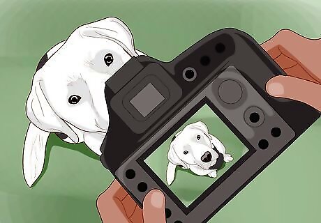 Reward the dog. If you are taking still shots and your dog is following a lot of commands (e.g. sitting still, looking directly at the lens, etc.) don’t forget to reward your dog with a treat. This will help your dog understand that he is doing the right thing, and photo sessions are a positive thing.