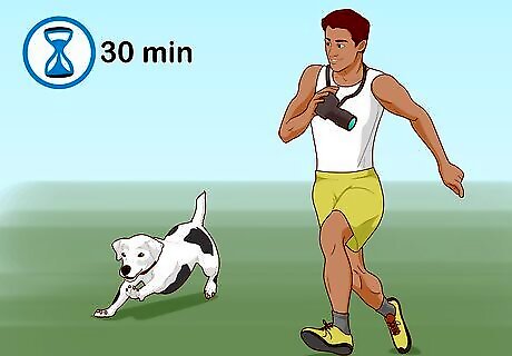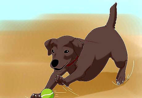 Try to anticipate your dog’s movements. When taking action shots, it can be tricky to get your dog at just the right moment. Spend some time observing how your dog moves before trying to catch the perfect photo. This way you’ll be able to better anticipate your dog’s next move. For example, does your dog tend to run in short, quick bursts, or does he jog along slowly? Do they make a particular facial expression when they’re about to try to catch something? Do they make a noise before they take off running? All of these will help you anticipate your dog’s next move more easily.