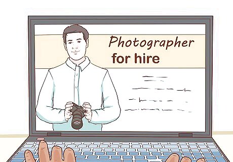 Find the right photographer for you. Ask friends and family for recommendations for photographers in your area, or search online to see what photography businesses are in your area. Look through various portfolios to find a style that you like. Be sure to book ahead of time—a sought-after photographer may book up months in advance.