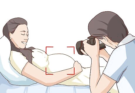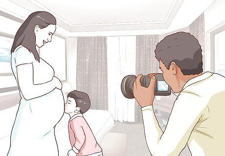 Ask your partner or other children to join you. Schedule your maternity photos on a day when your partner or other children can join you. Including your family in your maternity photos is a special way to capture your growing family. Ask your partner what day would work best for their schedule. If you have other children, schedule the photo shoot on a day they do not have school, or see if you can sign them out of class for an afternoon.