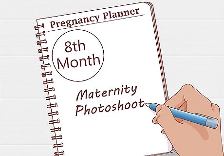 Plan to take your photographs when you are 7 or 8 months pregnant. You will want to schedule your maternity photo shoot when your bump is visible but you are still comfortable and able to move around. Wait until you are around 7 or 8 months pregnant, or between 31 and 36 weeks, to schedule your photo shoot. If you are pregnant with twins, consider having your photos taken between 27 and 31 weeks.