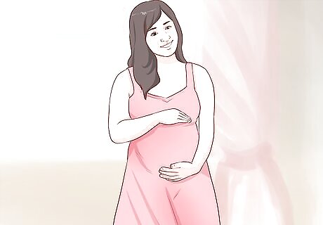 Avoid wearing tight clothing if you want to bare your belly. If you would like to capture a photo of your bare belly, be sure to dress in comfortable, loose-fitting clothing. Avoid wearing tight-fitting clothing or clothing with elastic bands since these can make marks on your belly. Consider wearing a loose-fitting dress with an empire waist or one cinches just below the bust. The fabric of the dress will drape comfortably over your baby bump, and you won't be constricted by tight, elastic bands. To show off your bump, consider wearing a form-fitting cotton dress that hugs your curves.