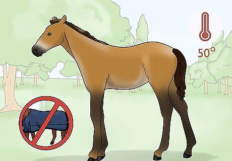 Remove the blanket in warmer temperatures. You can remove a horse blanket when ambient air temperatures get warmer, usually when they go above 50 degrees. You don’t want the horse to start sweating under the blanket and become wet.