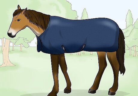 Blanket weaker animals. Some horses are more at risk in cold and damp conditions than others. These vulnerable animals need extra consideration and may require a blanket even when other, healthier horses don’t. Very young horses and very old horses will need extra protection and should be blanketed in cold and inclement weather. Do the same for horses that are in poor health or have a Henneke body score of 3 or below.
