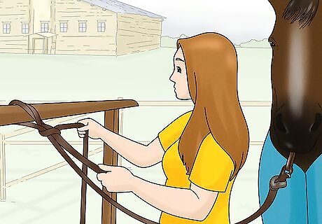 Tie the horse up. Put the horse on cross ties or attach it to a hitching post. Pat the animal to relax it before you take the blanket off. Move slowly and talk quietly to let the horse know where you are and what you're doing. Be relaxed, and don’t make any sudden movements.