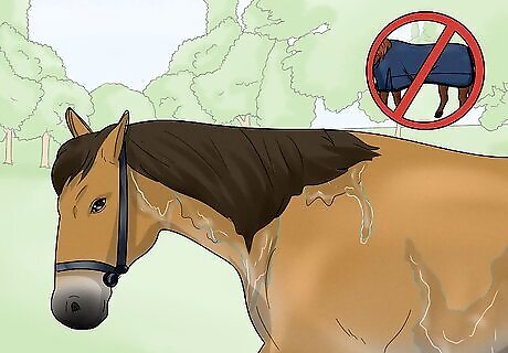 Take off the blanket if your horse is sweating, especially on the neck and behind the ears. If your horse is sweating beneath the blanket, you’ve chosen the wrong blanket and he is uncomfortable. Though a blanket might be appropriate for some nights when it’s cold, look out for changes in temperature from night to day.