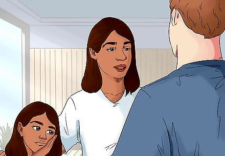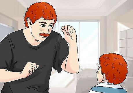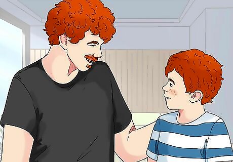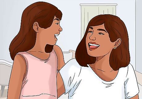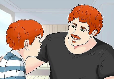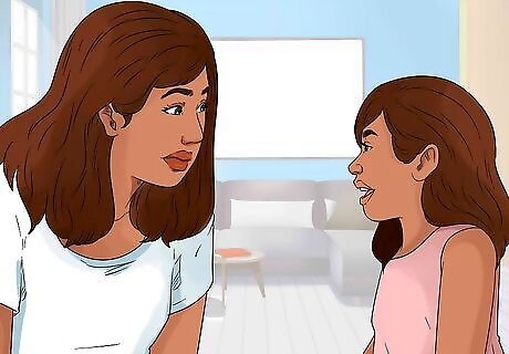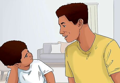Actively listen to your child. Demonstrate active listening when your child is talking to you by letting them finish their thoughts and asking them questions to engage them further. This will demonstrate to your child that paying attention to others when they speak is an important aspect of interpersonal communication. Sit down or kneel to your child's eye level so you can make eye contact when they speak to you. Remove distractions that make it difficult to hear your child by turning off the radio or television, or by moving into a quiet room away from others. Display signs of verbal and nonverbal listening as your child speaks; such as nodding your head or saying short, verbal expressions that prove you are listening.