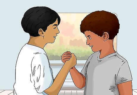 Encourage assertiveness. If you have a shy or quiet child, help them learn how to be assertive. Ask them what they want or need, and let them know that it is ok to express their needs because if they don’t say something, no one will know what they want. Find certain situations where you can let your child call the shots. Allow them to pick what they want for dinner one night, or give them control of the remote for an hour on the weekend. Encourage your child to be comfortable with themselves. Avoid statements that encourage peer worship by comparing your child to one of their friends or classmates. Instead, focus on their good traits and let them know it’s ok to be who they are. If your child comes to you with a specific situation such as a bully, help coach them through their specific scenario to figure out the best way for them to stand up for themselves.