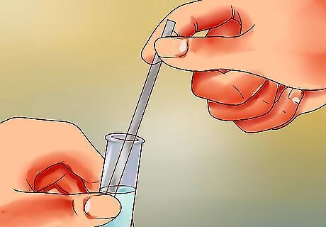 Dip testing strips from the kit into your sample water. Many kits will employ this method. You dip the provided strip in for each contaminant you're testing for. Let the strip develop for the length of time listed on the package. The strip will change colors based on whether the contaminant is there or not. Some strips will show a range, while others will just show whether you are over an unacceptable level or not for drinking water. Compare the color on the strip to the cards that came with the package. The color will tell you whether you have the contaminant or not. Sometimes, the darkness of the color will help you determine the amount of the contaminant in your water.