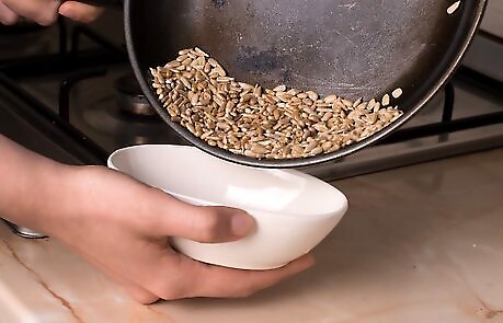 Spread the sunflowers seeds out in a microwave-safe dish. A microwave-safe pie plate works well, but any microwave-safe dish that is large enough to allow you to spread the seeds out on a single layer will work. Make sure the seeds are spread out evenly to prevent any from burning.