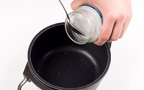 Heat the coconut oil. Pour the oil into an 8-inch (20-cm) skillet and heat the skillet on the stovetop over medium heat. Continue heating until the oil has melted and coated the bottom of the pan smoothly. Remove the skillet from the heat.