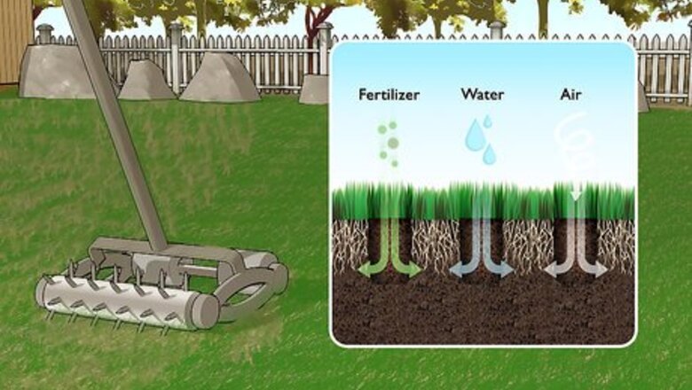 Assess whether your lawn is due for aeration. You should aerate your lawn every 2 to 3 years. This process removes small plugs of soil from the ground and allows new nutrients, soils, air, and water to get to the roots of the existing plants. If your lawn is large, you may want to break it up into smaller segments and do a different one each year.