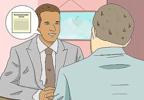 Apply for your driving instruction license. After passing your tests, apply for your license with your state or local motor vehicle agency. Vision and physical tests will be required at this time. The agency will also do a criminal background check and driving record check. You'll need to submit fees, as well, but these will vary depending on your location. Once your application is approved, the state or agency will issue your license. In states and countries where instructors can work outside of a driving school, government officials may inspect the vehicle you’ll use for teaching.