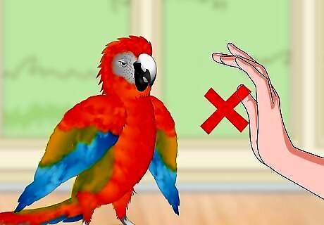 Avoid over-exciting your friend. Macaws are more likely to bite because they are excited than out of pure aggression. Try to keep noise levels low, and move calmly around your bird, especially when handling it. This will help them to stay calm.