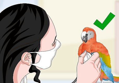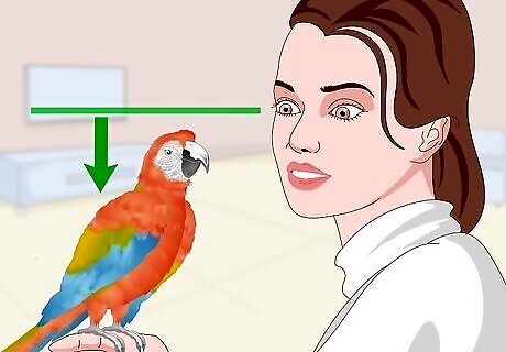Keep the bird below eye level. When macaws are low to the ground, they are less likely to become aggressive. If you don’t have a specific reason to be holding your bird up high, it’s best to keep it down low. This will also reduce the chance of a potentially painful bite to the face.