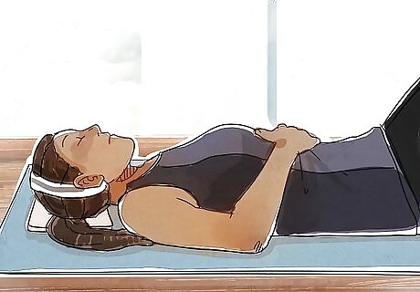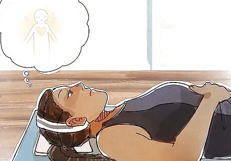Lie down in a comfortable place. Body scan meditation can also help you remain in the present moment. Focusing on the present can help aid in depression. Many people report feeling more relaxed after a few weeks of practicing body scan meditation. The first step in body scan meditation is lying down. Choose a comfortable space, like a mat or your bed.
