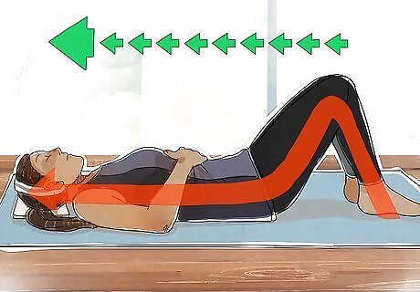 Notice your body and set your intention. Spend some time focusing on your body. Then, set your intentions for the exercise. Your intention is an aim or purpose that embodies how you want to live your life. It could be something like, "Open my heart," or "Have compassion for myself." Your intention should always be positive. How does your body feel against the mat, bed, or floor? What body parts seem tense? Is there anything pressing into your hips or back? Imagine softening those areas, making them feel more relaxed and comfortable. Relax any body parts, like the jaw or shoulders, that seem tense. The point of body scan meditation is to clear your mind. Spend a moment stating your intentions in your head. Agree to let go of the past and future and allow everything but your body to fade into the background.