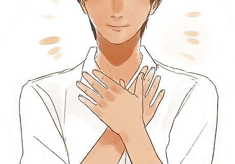 Feel your breath. After spending a few moments focusing on the present, turn your attention to your breath. Breathing is a natural, rhythmic process. Pay attention to how air comes in and out of your lungs. Channel all your attention on your breath. There is no need to manipulate your breath or breathe in a particular way. Just pay attention to its natural rhythm. Keep your attention on your body and environment in addition to your breathing. Try to spend a few minutes breathing and focusing on the present. Once again, if your mind wanders, try to bring things back to the present. Try practicing diaphragm breathing either sitting up or lying down. If you plan to sit up, make sure you sit up straight so you can breathe more easily. Place one hand on your chest and another on your lower stomach. Breathe in such a way that the hand on your stomach rises while the one on your chest remains still. Breathe in through your nose and out through your mouth. Repeat for as many breaths as it takes for you to begin to feel calmed and emotionally slowed down.