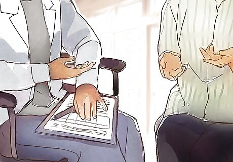 See a therapist while practicing meditation. Studies about the efficacy of meditation to treat depression are ongoing, and it's important you do not rely solely on meditation to treat depression. Depression is a serious mental health issue and should not be taken lightly. You can find a therapist by asking your regular doctor for a referral. You can also find a list of therapists online through your insurance provider. If you are a college student, you may be entitled to free counseling through your university. Symptoms of depression include: Feelings of emptiness, hopelessness, despair, or sadness Irritability or mood swings Loss of interest in things you used to enjoy Unusual sleep patterns (sleeping too much or too little) Unusual appetite (wanting to eat less, wanting to eat more) Changes in weight (weight loss or weight gain) Fatigue, exhaustion, lack of energy Agitation or anxiety Slowed thinking or movement, feeling weighed down Feelings of worthlessness or guilt Difficulty concentrating, thinking, or making decisions Unexplained physical ailments, likes aches or pains Thoughts or attempts of suicide