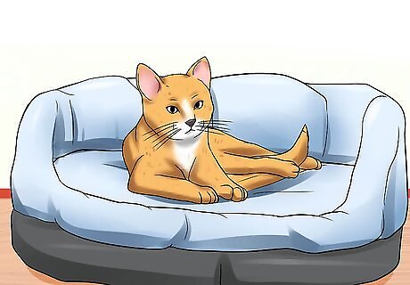 Give your cat care at home. Make sure that your cat gets all the love, attention, and gentleness it needs after treatment, whatever treatment your cat is receiving. This means understanding that it may have limited physical ability for awhile and that you will have to give it special care. As your cat loses its sight, you may need to make accommodations for it. For example, you may need to give it easier access to its litter box or move objects that could be a hazard to it if it can't see them. Your cat may act strangely while dealing with glaucoma. Understand that it is probably not feeling well and that your job is to make sure it is not uncomfortable or in pain, even if it is not its usual happy and loving self.