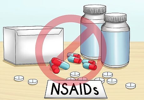 Stop your use of NSAIDs. Nonsteroidal anti-inflammatory drugs, when used long-term, can also cause or prevent healing of peptic ulcers. If you regularly take over-the-counter pain relievers, discuss alternatives with your doctor. Switching to something gentler on the stomach can help ulcers to heal. Some common NSAIDs include aspirin, ibuprofen products like Motrin and Advil, and Naproxen products such as Aleve and Anaprox. If you must continue using NSAIDs, your doctor can give you a PPI medication to take simultaneously to lower your risk of ulcers.