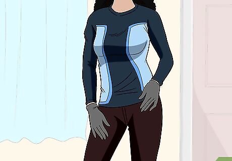 Wear clothing that prevents you from picking your skin. If you still tend to pick at your skin with short nails, try wearing a pair of gloves so that your fingernails cannot come into contact with your body. If this isn’t possible, cover up areas of your skin that you tend to pick. For example, wear a top with long, tight-fitting sleeves if you pick at your arms, or a pair of fitted pants or leggings if you tend to pick at the skin on your legs.