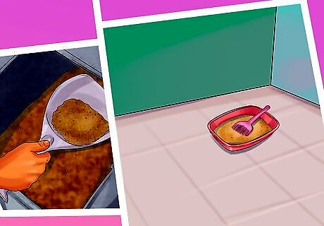 Keep your cat’s litter box clean. You should also keep your cat’s litter box clean and dry to encourage them to go to bathroom. You may try to clean the litter box more than usual so your cat feels more comfortable urinating in their litter box. If your cat is old and senile, you may place several litter boxes around your home so your cat also more opportunities to go to the bathroom in the litter box. You may also lead your cat to their litter box if they appear to have forgotten where it is located. You may also keep your cat's litter box in a room that has hardwood, tile, or linoleum floors so that if they have an accident on the way to the litter box, it is easier to clean up.